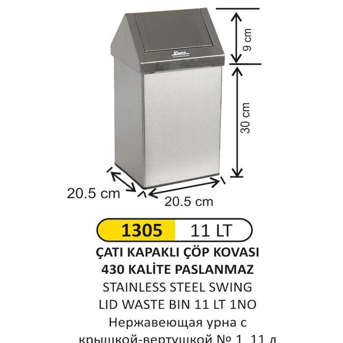 11 LT ÇATI KAPAKLI PASLANMAZ ÇÖP KOVASI